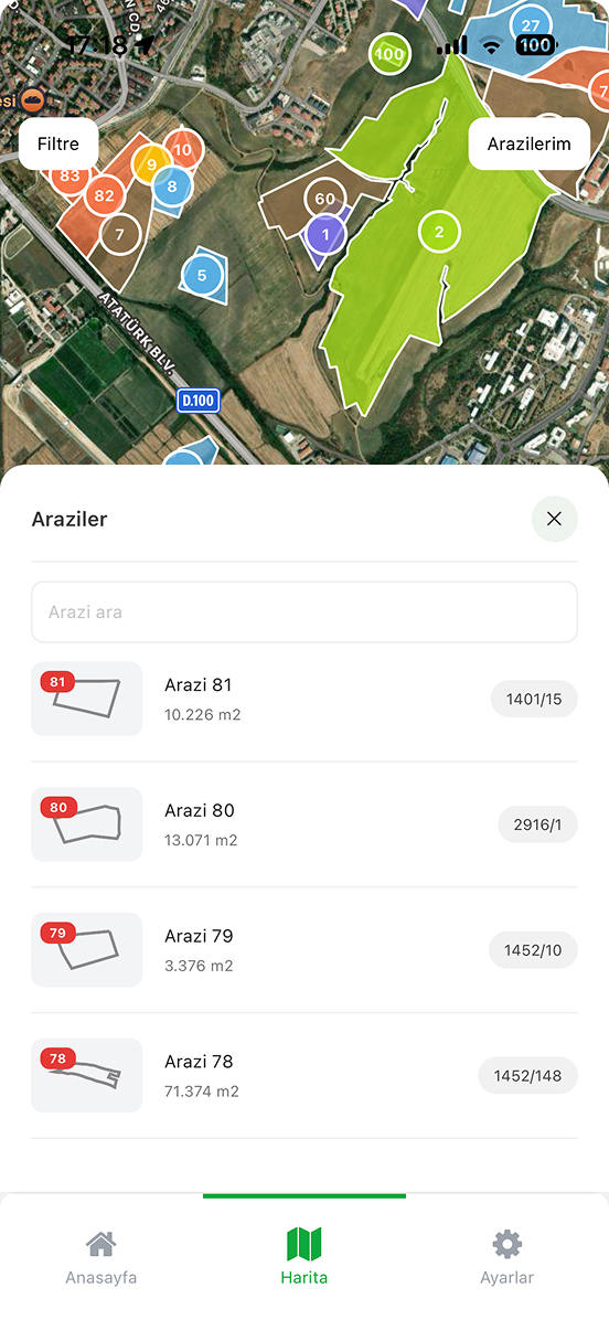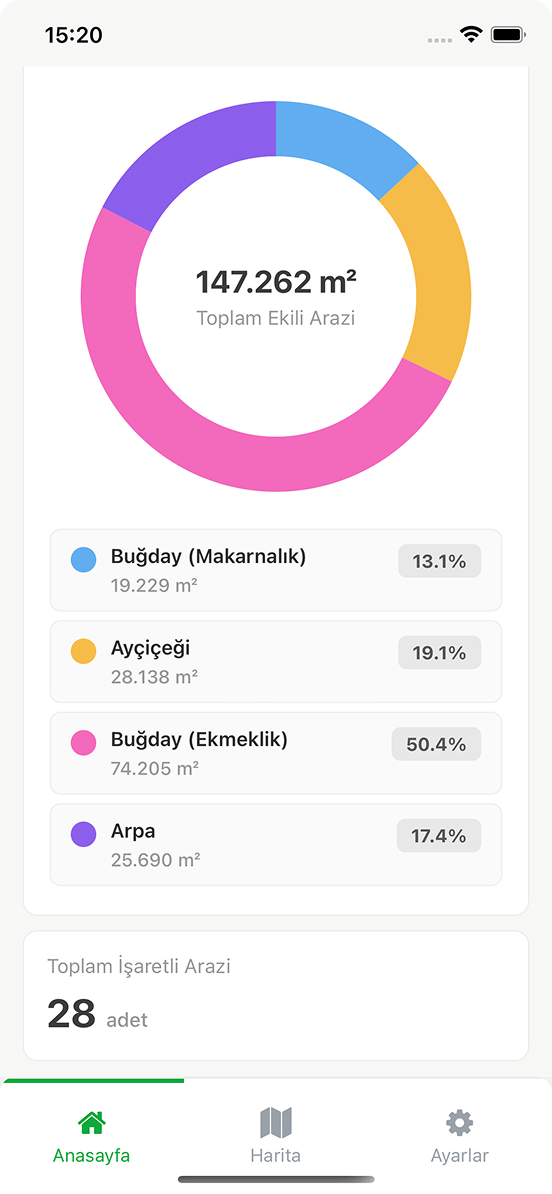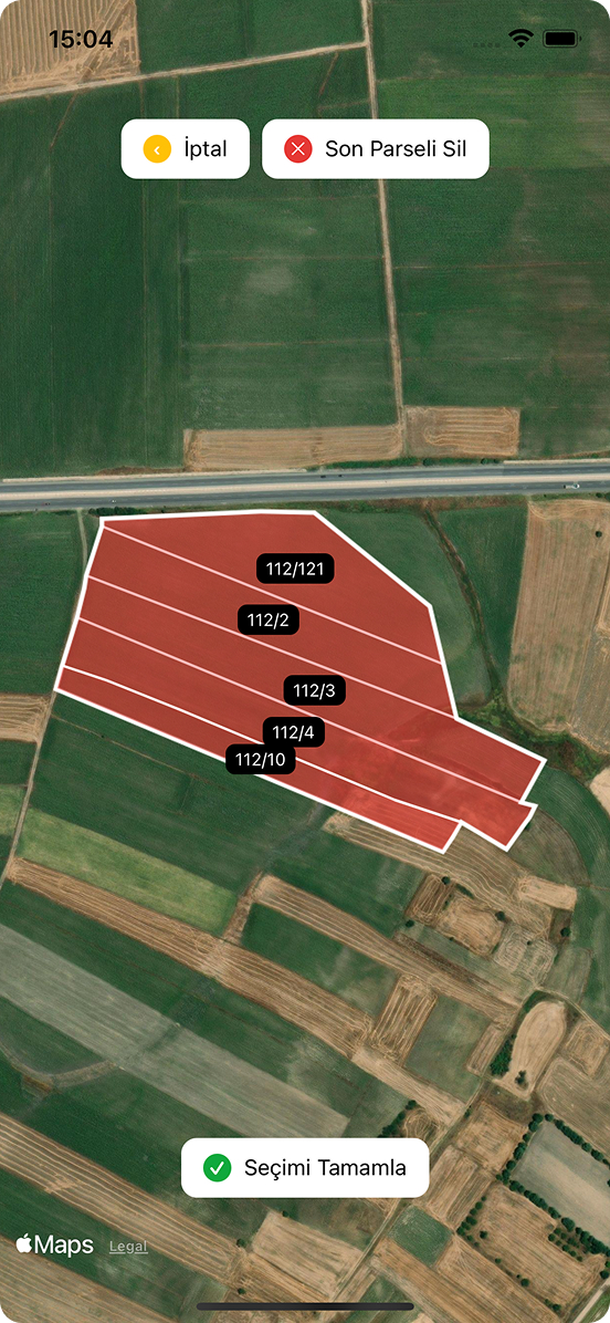 Tarlalarınızı santimetre hassasiyetinde haritalayin. Sınırları çizin, alanları otomatik hesaplayın, parsel bilgilerini anında kaydedin.