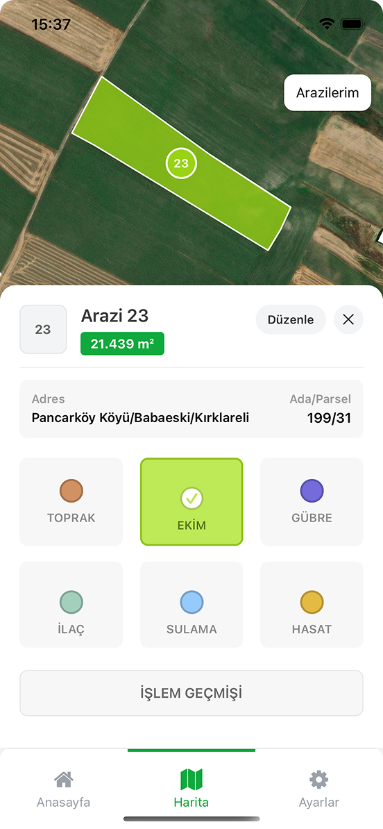 Ekimden hasada kadar tüm tarımsal süreçleri kaydedin. Hangi tarlada ne zaman ne işlem yaptığınızı takip edin, tarih bazlı notlar alın.